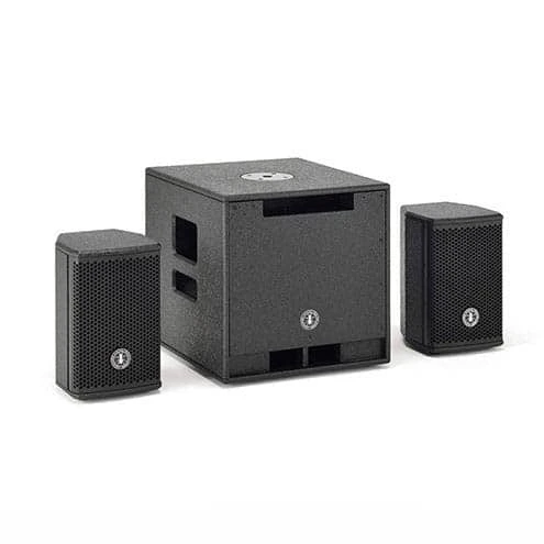The bass reflex subwoofer is the heart of the system, equipped with a Class D amplifier delivering power to the sub itself and to the 2 full-range satellites, providing a dynamic and faithful response wherever your performance space is.