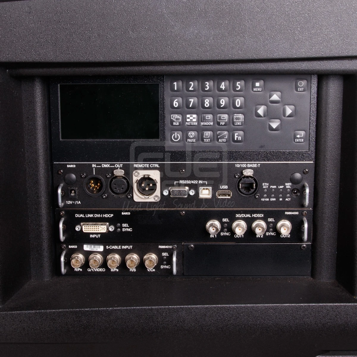 Optional Inputs : 5-BNC RGBHV (RGBS/RGsB, YUV CS/SOY, Composite video, S-Video); DVI-I (HDCP including analog RGB YUV) + BarcoLink/SDI/HDSDI/Dual HDSDI/3G; 3D active input (HDMI/DisplayPort) feat. SENSIO 3D