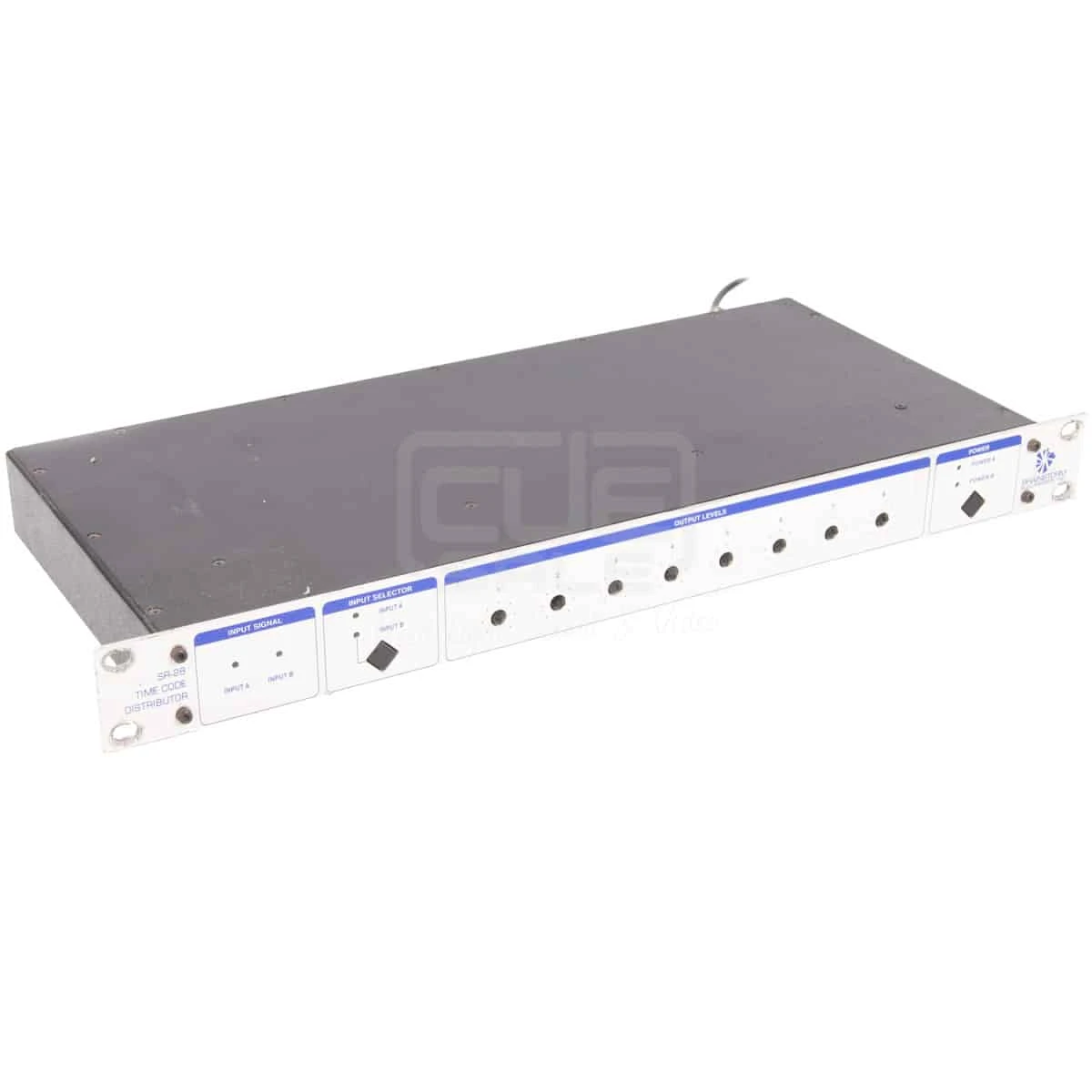 Cleans up timcode and distributes it to multiple destinations through 8 individually buffered outputs. Ideal for long cable runs. Either of the 2 inputs can be selected. The SR-28 can drive timecode over long cables, making it ideal for synchronization during live shows and remote recording.