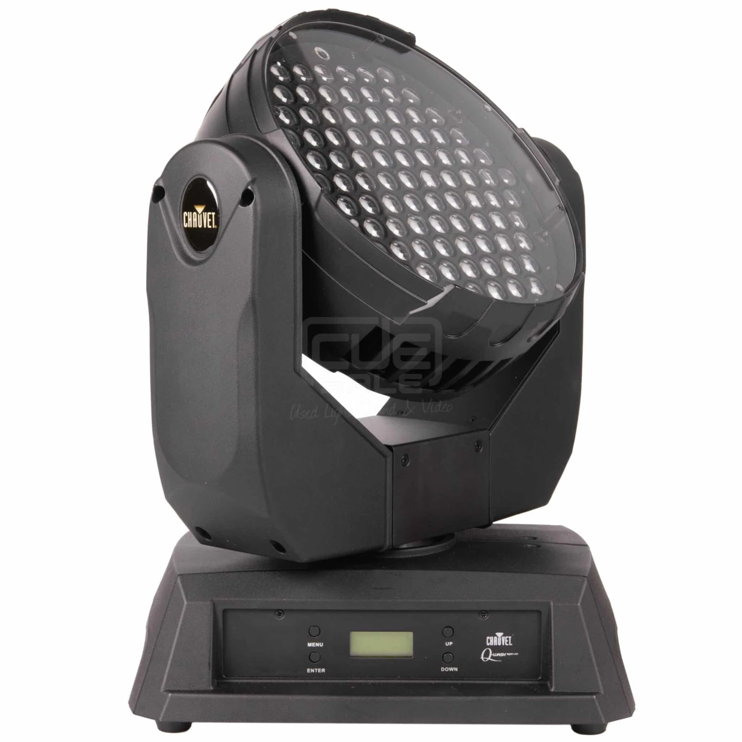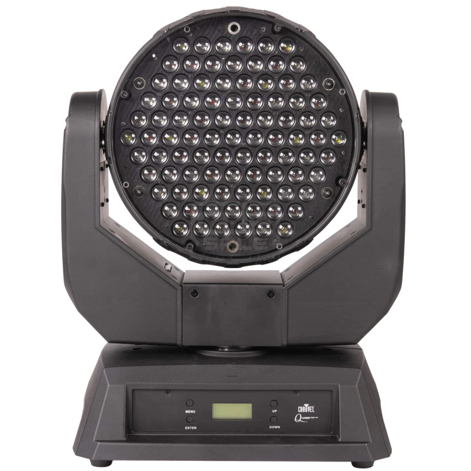 The Q-Wash™ 560Z-LED is an RGBWA LED moving yoke wash product. The Q-Wash™ 560Z-LED consists of a base section and a moving yoke with a pan range of up to 540º. The moving head, which has a tilt range of 270º, contains the 91 RGBW LEDs and the zoom motors. The base section has the 3- and 5-pin DMX input and output sockets, the IEC power input connector, and the LCD based control panel.