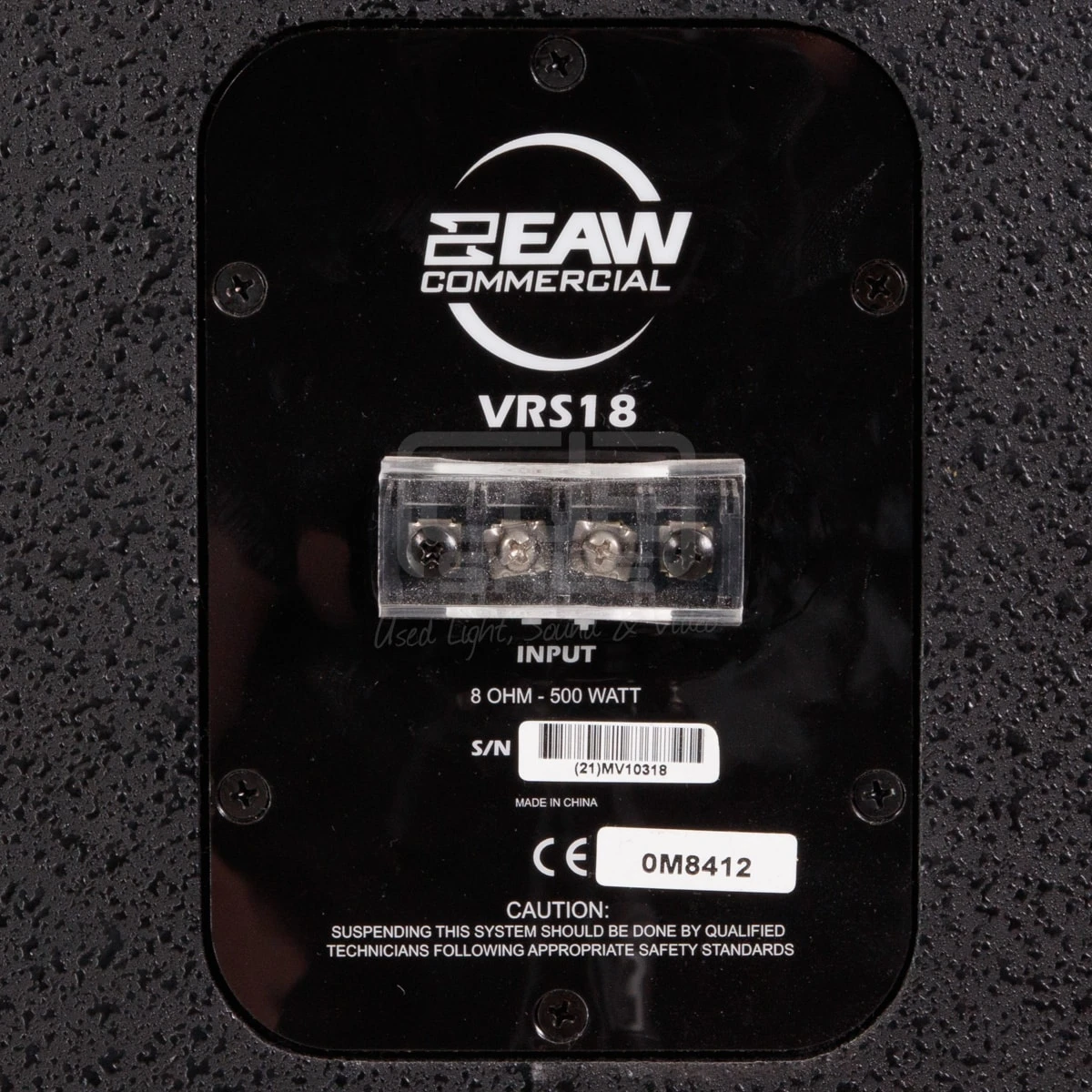 The cross-ply laminated birch enclosure is available in either black or white finish. It includes a number of threaded inserts for use with forged shoulder eyebolts. A foambacked powder-coated steel grill protects the driver. The entire loudspeaker is fully tested at the time of manufacture and is warranted to be free from defects in materials and workmanship for a period of five years from the date of purchase.