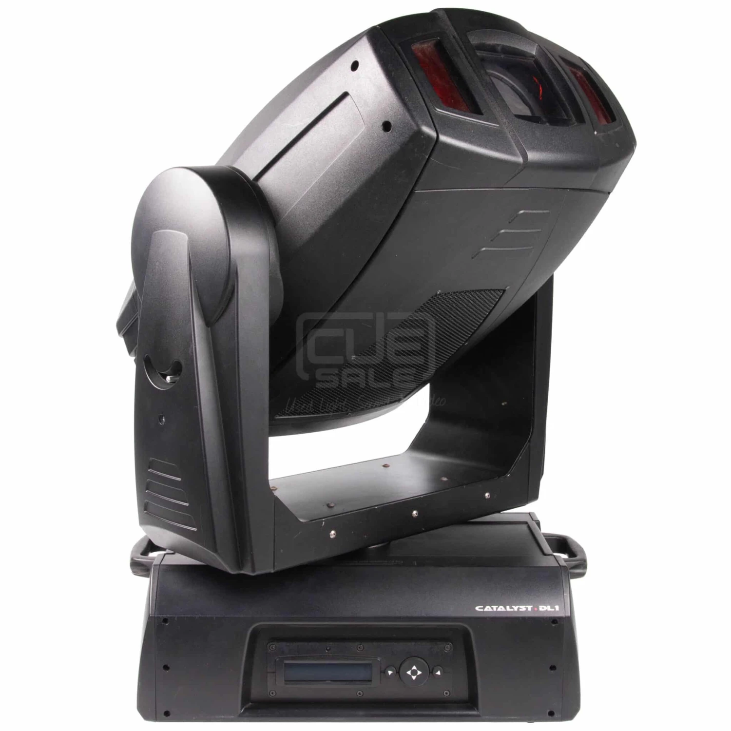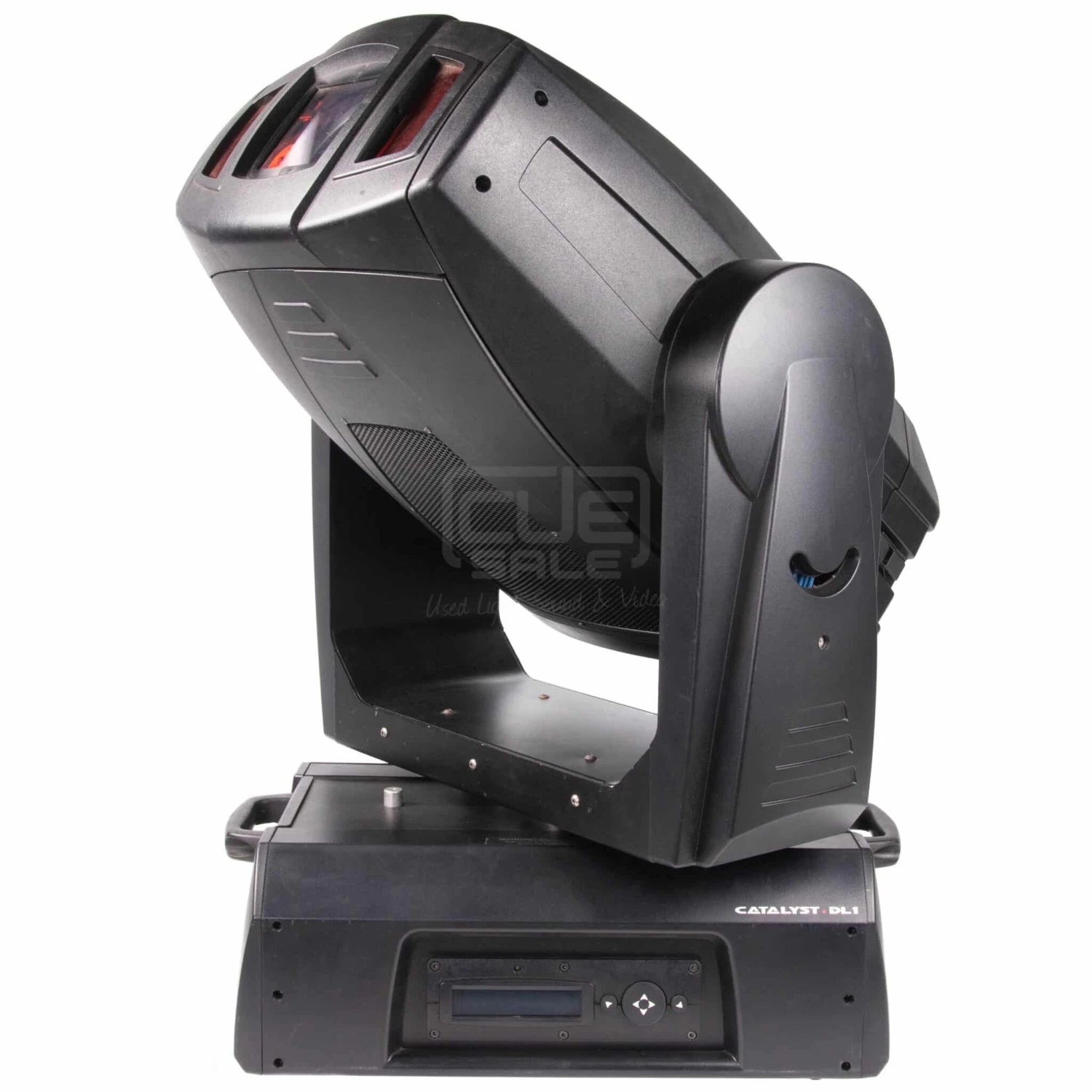 The DL.1 (Digital Light 1) fixture merges video projection and automated lighting technologies with a DMX controllable video light engine housed in a moving yoke fixture. DL.1 itself doesn’t generate images; it is a mechanical means of displaying video images onto a stage with automated control of zoom, focus, and other video-related parameters. DL.1 fixtures can be used in conjunction with the Catalyst Media Server and Catalyst Version 3.0 software, or alone to project images from DVDs, videos and other compatible media.
